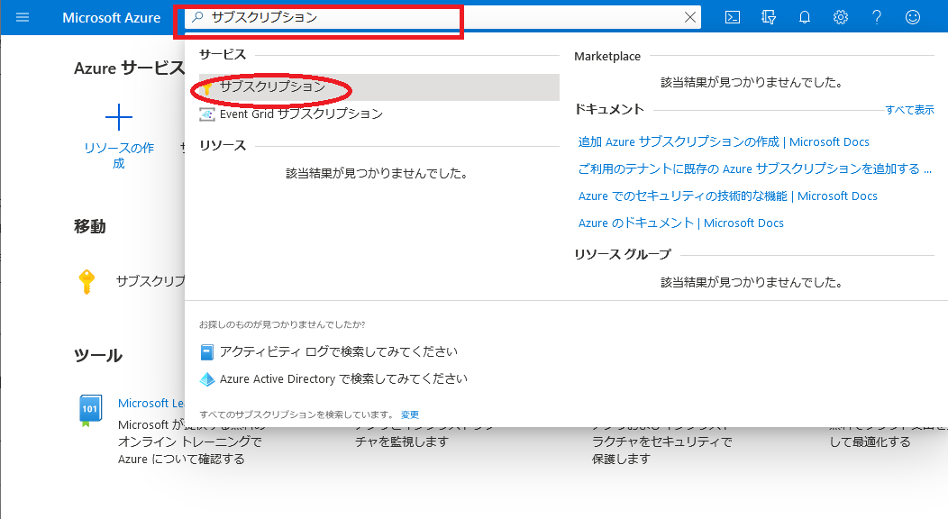 3.Azure の無料アカウントにサインアップしたときに作成されたサブスクリプションを選択します。
